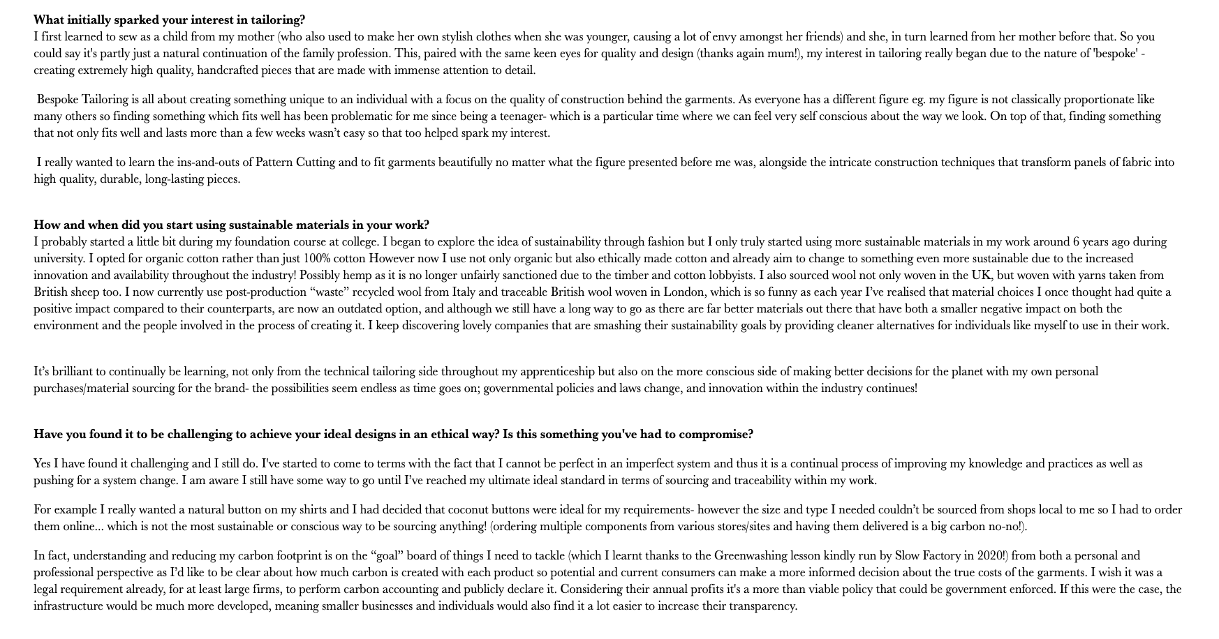 The lovely Sophie Proops at Wires Glasses got talking about bespoke tailoring, sustainability, and navigating within an imperfect system whilst trying to do the best for the environment and those affected by a product supply chain.